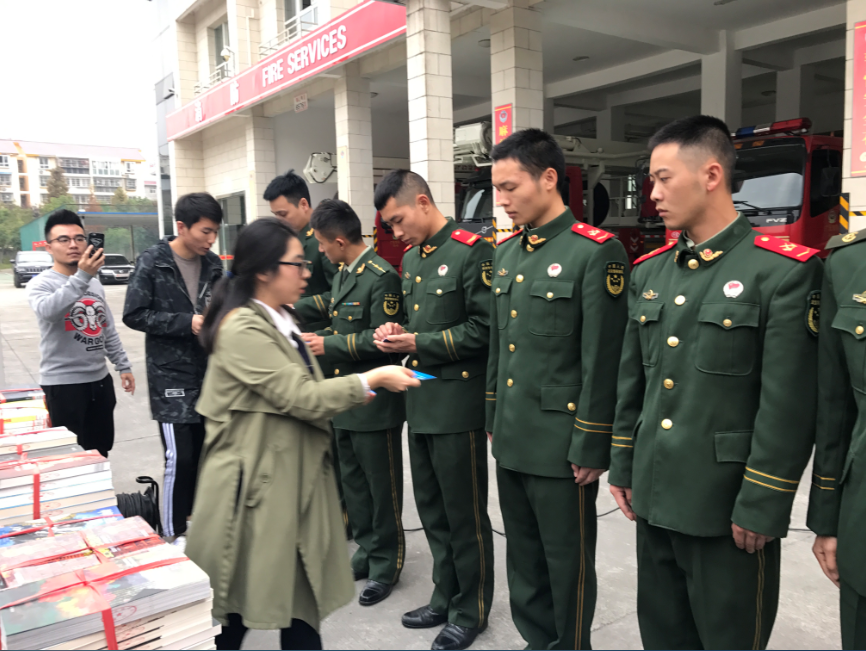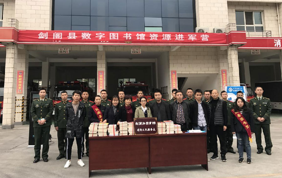 11月9日是全国消防安全宣传教育日,为了进一步丰富“双拥”共建内容,活跃军营精神文化生活,上午剑阁县图书馆联合国家图书馆和四川省图书馆的工作人员走进了剑阁县图书馆馆外服务点--消防大队,看望慰问消防官兵,并开展了“书香军旅”数字阅读推广活动。