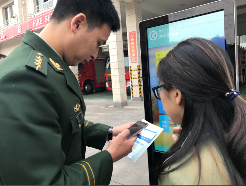 活动中,图书馆充分发挥文化传播的职能,向官兵们赠送了“数字图书馆阅读卡”,推荐国家图书馆“扫码看书、百城共读”优秀数字图书,丰富广大官兵阅读形态,图书馆的工作人员向官兵们现场介绍并演示如何操作“剑阁县图书馆数字图书馆APP”等数字资源阅读平台的使用方法。我馆还为消防大队图书室更换了纸质图书约300册。