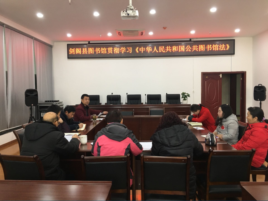 为深入学习宣传贯彻《中华人民共和国公共图书馆法》,深刻领会和把握其主要精神实质,2018年1月16日上午,剑阁县图书馆组织全体干部职工召开了专题学习会。会上,剑阁县图书馆副馆长雍涛为大家逐条解读了《中华人民共和国公共图书馆法》,通过学习,我们了解到该法对健全我们文化法律制度、促进公共图书馆事业发展、保障人民群众基本文化权益有重要意义。