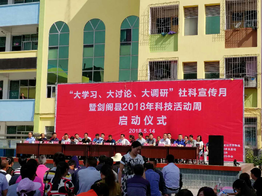 为大力宣传习近平总书记对四川工作重要指示精神, 5月14日上午由中共剑阁县委组织部、白龙镇党委政府主办,县级有关部门协办的“大学习、大讨论、大调研”社科宣传月暨剑阁县2018年科技活动周的启动仪式在白龙镇举行,