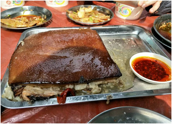 千人“坝坝席”,慕名而来的食客让“大肉会”座无虚席,尽管桌椅已准备的足够充分,但还是无法满足食客的需求。“大肉会”宴席八人围坐石桌,由古时的“十碗一品”演变到集炒、拌、煮为一体,其特色在于大肉,经过“三泡三煮”的传统工序,方可上桌,上桌后,有经验的长者用小刀按“三刀八块”的方法切好供食客享用。