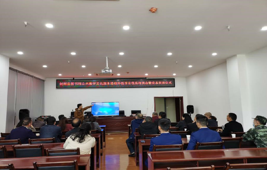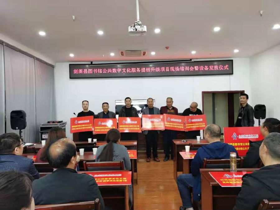 剑阁县公共数字文化提档升级项目现场培训会暨设备发放仪式近日在剑阁县图书馆举行。本次培训和设备发放面向图书馆20个分馆及县消防救援大队、县武警中队服务点。