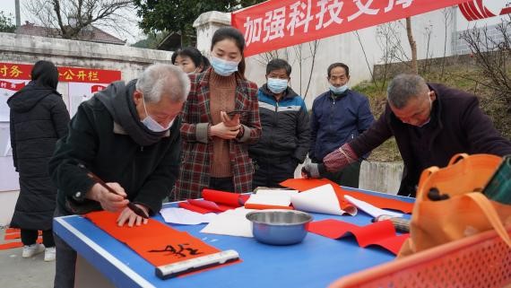 剑阁县老科协书画摄影分会的书法家们现场为村民书写春联60余幅,福字60余张。